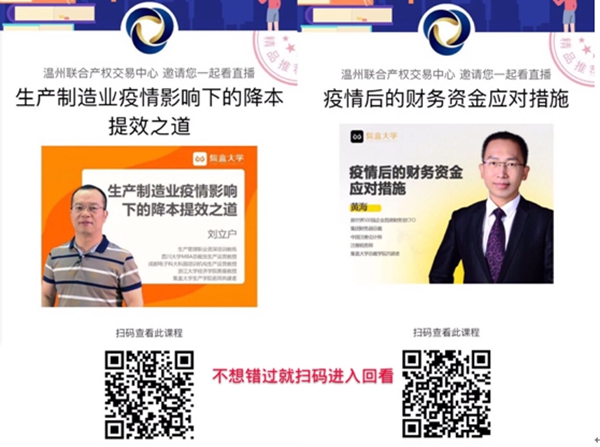 3月10日,溫州聯(lián)合產(chǎn)權(quán)交易中心聯(lián)合集盒大學(xué),共同開設(shè)了第二期“金投梧桐與您同行”助企公益網(wǎng)絡(luò)大講堂,助力企業(yè)復(fù)工復(fù)產(chǎn),為數(shù)百家溫州區(qū)域資本市場的培育企業(yè)提供在線惠企服務(wù)。