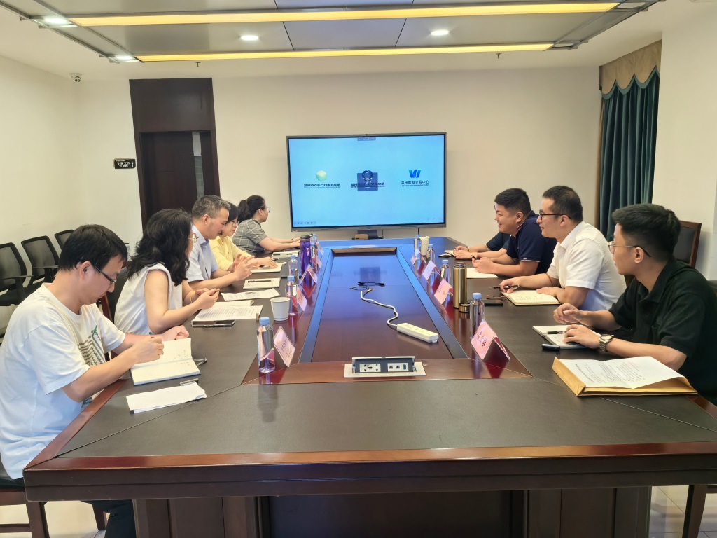 7月18日上午,衢州市產(chǎn)權(quán)交易中心有限公司執(zhí)行董事尹競凱、總經(jīng)理金明一行赴溫州聯(lián)合產(chǎn)權(quán)交易中心(以下簡稱“聯(lián)交中心”)交流調(diào)研,聯(lián)交中心副總經(jīng)理謝德款、陳瓊瓊以及相關(guān)部室負(fù)責(zé)人參與座談。
